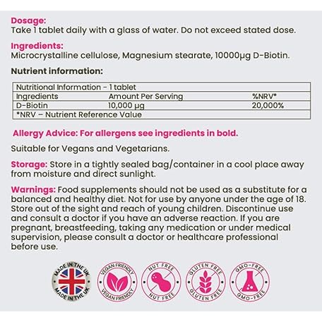 Sản phẩm Biotin 10,000mcg High Strength Vitamins for Your Hair, Skin, Nails - 120 Tablets đang được bán với giá ưu đãi là $7.3466 tại nước Anh.