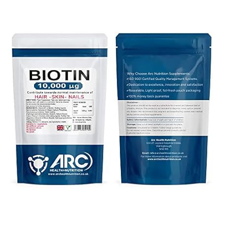 Thương hiệu ARC) HEALTH+NUTRITION WWW.ARCHEALTHNUTRITION.CO.UK là cái tên nổi tiếng được rất nhiều khách hàng trên thế giới chọn lựa. Với kiểu dáng đẹp mắt, sang trọng, sản phẩm Biotin 10,000mcg Vitamin B7, Hair Growth, High Strength 250 Tablets Suitable for Vegetarian and Vegan, Made in UK là sự lựa chọn hoàn hảo nếu bạn đang tìm mua một món cho riêng mình.