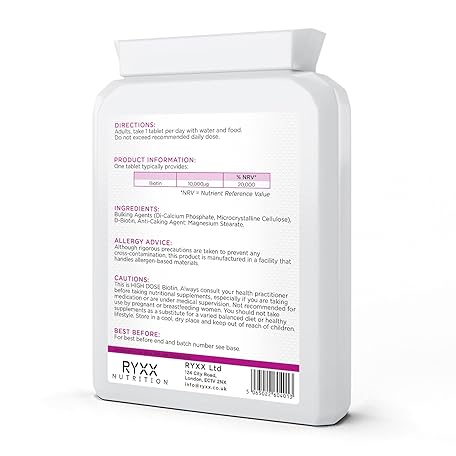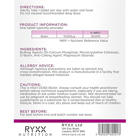 Thông tin sản phẩm Biotin Complex 10,000µg | High Strength Biotin for Hair Growth, Skin & Nails | 120 Vegan Tablets | Made in The UK by RYXX