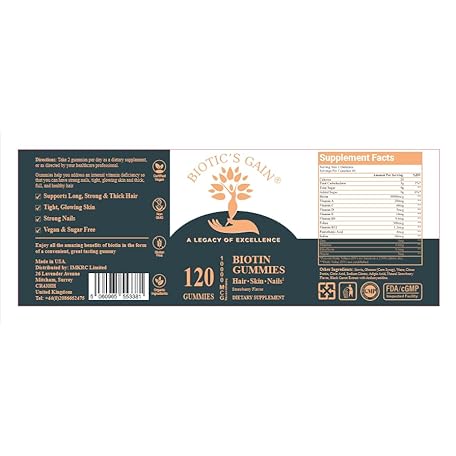 Thương hiệu Biotic's Gain là cái tên nổi tiếng được rất nhiều khách hàng trên thế giới chọn lựa. Với kiểu dáng đẹp mắt, sang trọng, sản phẩm Biotin Gummies, 10000 mcg, Hair Skin and Nail Support, with Vitamins A C D E B6 B12 and Zinc, Vegan, Sugar Free, 120 Count là sự lựa chọn hoàn hảo nếu bạn đang tìm mua một món cho riêng mình.
