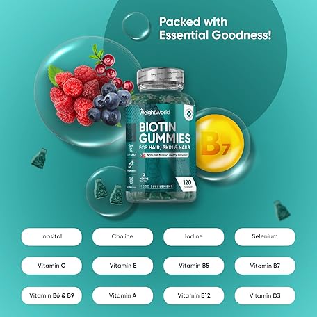 Thương hiệu WeightWorld là cái tên nổi tiếng được rất nhiều khách hàng trên thế giới chọn lựa. Với kiểu dáng đẹp mắt, sang trọng, sản phẩm Biotin Gummies - 120 Chewable B7 Vitamin Gummies - with 9 Essential Vitamins & 4 Nutrients - Biotin 5000mcg Supplements - Natural Mixed Berry Flavour - Non-GMO, Gluten-Free & Vegetarian-Friendly là sự lựa chọn hoàn hảo nếu bạn đang tìm mua một món cho riêng mình.