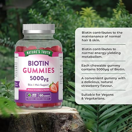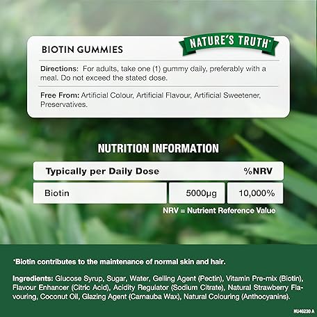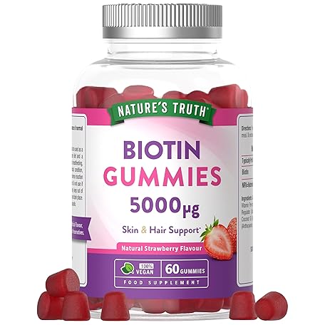 Sản phẩm Biotin Gummies 5000mcg | 60 Vegan Gummies | High Strength Vitamin B7 | Natural Strawberry Flavour | Nature's Truth đang được bán với giá ưu đãi là $14.3989 tại nước Anh.