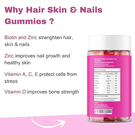Thông tin sản phẩm Biotin Gummies, Hair Growth, Nail Strengthener & Skin Support, Hair Skin & Nails Vitamin, 60 Gummies, Vitamin Supplement, Hair Growth, Nail Strengthener & Skin Support, (Pack of 2)