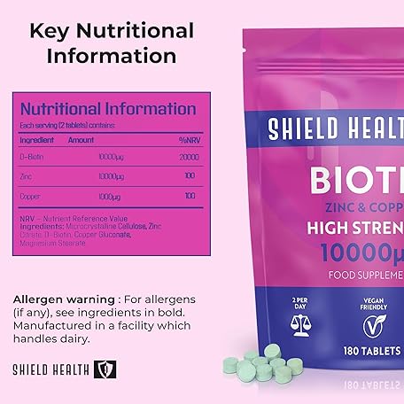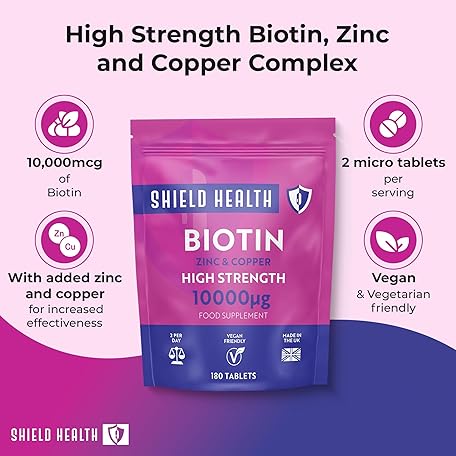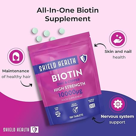 Thương hiệu Shield Health là cái tên nổi tiếng được rất nhiều khách hàng trên thế giới chọn lựa. Với kiểu dáng đẹp mắt, sang trọng, sản phẩm Biotin - Hair Growth 180 Vegan Tablets - 10000 mcg Enriched with Zinc & Copper - Hair Skin and Nails Supplements for Women & Men UK Made là sự lựa chọn hoàn hảo nếu bạn đang tìm mua một món cho riêng mình.