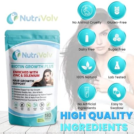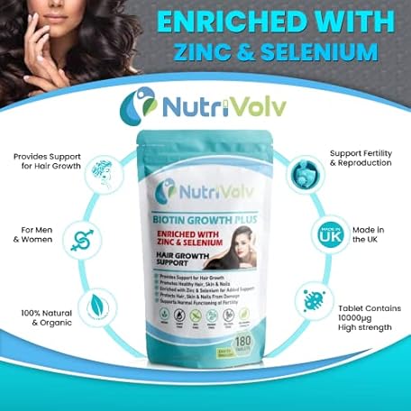 Thương hiệu NutriVolv là cái tên nổi tiếng được rất nhiều khách hàng trên thế giới chọn lựa. Với kiểu dáng đẹp mắt, sang trọng, sản phẩm Biotin Hair Growth | Enhanced with Zinc & Selenium | 180 Tablets | 10,000mcg Biotin | Hair Vitamins Complex | Vegan | Hair Skin & Nails Vitamins for Men & Women | UK Made là sự lựa chọn hoàn hảo nếu bạn đang tìm mua một món cho riêng mình.