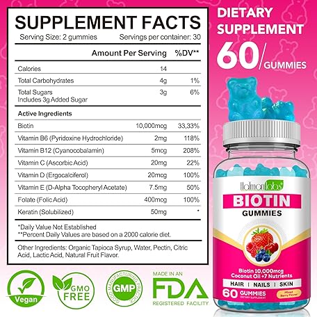 Thương hiệu skin tag removal là cái tên nổi tiếng được rất nhiều khách hàng trên thế giới chọn lựa. Với kiểu dáng đẹp mắt, sang trọng, sản phẩm Biotin Hair Growth Supplement 10,000 mcg-Chewable Biotin Gummies for Skin, Hair & Nails-Hair Vitamins for Growth and Hair Loss with Coconut Oil, Vitamin B6, C, & E là sự lựa chọn hoàn hảo nếu bạn đang tìm mua một món cho riêng mình.