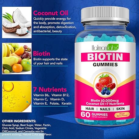 Thông tin sản phẩm Biotin Hair Growth Supplement 10,000 mcg-Chewable Biotin Gummies for Skin, Hair & Nails-Hair Vitamins for Growth and Hair Loss with Coconut Oil, Vitamin B6, C, & E