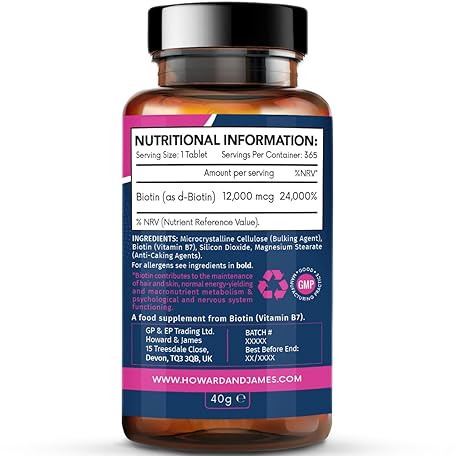 Thông tin sản phẩm Biotin Hair Growth Supplement 12000mcg - 365 Vegan Biotin Tablets (1 Year Supply) - Hair Skin & Nails Vitamins for Women & Men High Absorption D-Biotin 12,000 mcg Vitamin B7 - by Howard & James