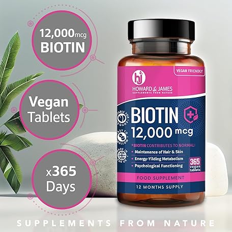 Sản phẩm Biotin Hair Growth Supplement 12000mcg - 365 Vegan Biotin Tablets (1 Year Supply) - Hair Skin & Nails Vitamins for Women & Men High Absorption D-Biotin 12,000 mcg Vitamin B7 - by Howard & James đang được bán với giá ưu đãi là $17.1566 tại nước Anh.