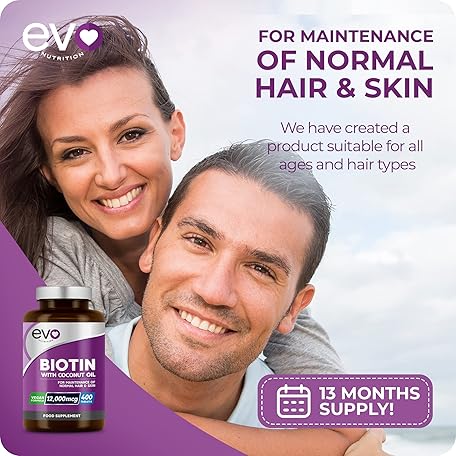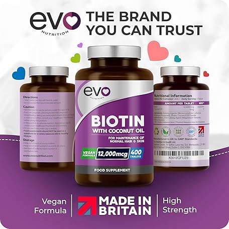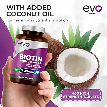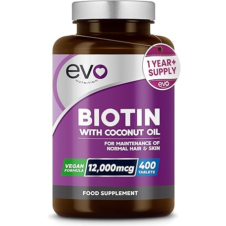 Sản phẩm Biotin Hair Growth Supplement 12,000mcg with Coconut Oil | 400 High Strength Tablets for - 13 Month Supply Vitamin B7 Supports Normal Skin & Made in UK by EVO Nutrition đang được bán với giá ưu đãi là $14.17 tại nước Anh.