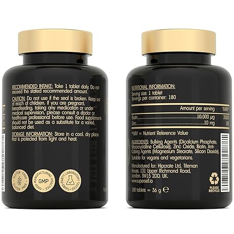 Sản phẩm Biotin Hair Growth Tablets - Hair Skin and Nails Vitamins for Women & Men - 180 Biotin Tablets with Zinc 10000 mcg - High Strength Supplements - UK Made - Superior Absorption đang được bán với giá ưu đãi là $28.3291 tại nước Anh.