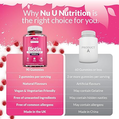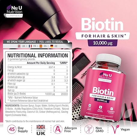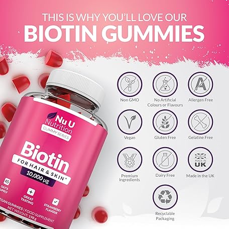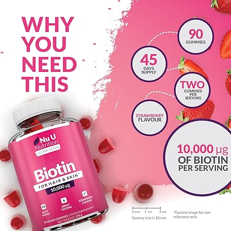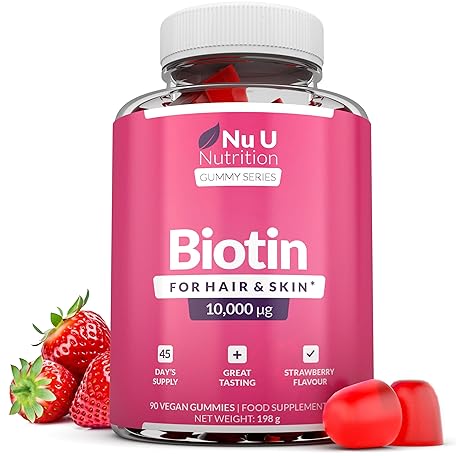 Sản phẩm Biotin Hair Gummies 10,000mcg - 90 Vegan Gummies - Delicious Strawberry Flavour - Chewable Vitamin B7 Hair Vitamins - Gelatine Free - Made in The UK - Nu U Nutrition đang được bán với giá ưu đãi là $22.9118 tại nước Anh.