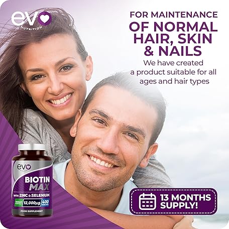 Thông tin sản phẩm Biotin Max with Zinc & Selenium | High Strength Vitamins & Minerals to Support Hair, Skin & Nail Health | Vegan Food Supplement Complex | 400 Tablets for a 13 Month Supply | UK Made by EVO Nutrition