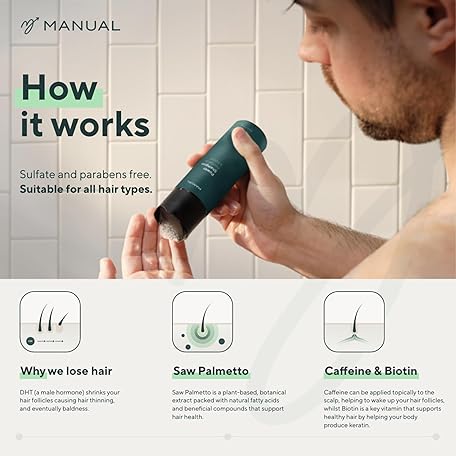 Thông tin sản phẩm Biotin, Saw Palmetto & Caffeine Hair Growth Manual Shampoo for Men (200ml) – Natural Formula to Stimulate & Revive Follicles – Use Daily to Support & Maximise Regrowth & Hair Health
