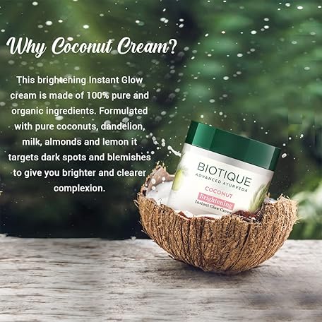 Thông tin sản phẩm Biotique Bio Coconut Whitening and Brightening Cream for All Skin Types, 50 gm I Remove Dark Spots I 100% Natural & Organic I Pure Virgin Coconut, Ddelion and Manjishtha