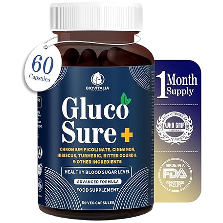 Sản phẩm Biovitalia Gluco Sure+ Blood Sugar Control Supplement Capsules with Chromium Picolinate Cinnamon Bitter Gourd Hibiscus for Healthy Blood Sugar Levels Vegan Glucose Support Supplement - 60 Capsules đang được bán với giá ưu đãi là $21.6038 tại nước Anh.