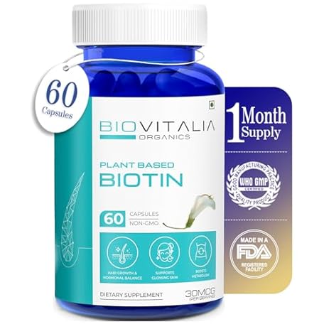 Sản phẩm BIOVITALIA Plant Based Biotin Capsules Hair Vitamin B7 Supplement Helps Promote Hair & Nail Support Skin Health Enriched with Bamboo Extract & Vitamin C for Women Men - 60 Capsule đang được bán với giá ưu đãi là $13.2326 tại nước Anh.