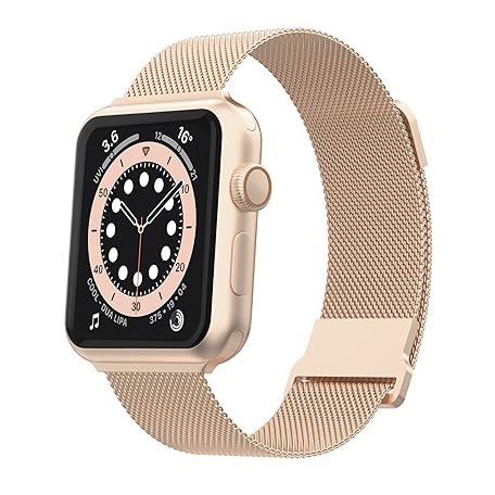 Biuupa Metal Straps Compatible With Apple Watch 42mm 40mm 45mm for Women and Men, Breathable Stainless Steel Mesh Band with Adjustable Magnetic Clasp for iWatch Series 8 7 6 5 4 3 2 1 SE- Rose Gold