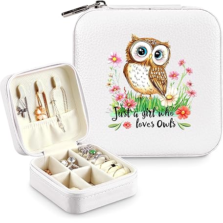 BJDAMAI Owl Jewelry Box, Gifts For Kids Teens Girls Age 8-12, Owl Lovers Stuff Items Accessories Things Merchandise Decor Merch, Travel Ring Earrings Necklace Organizer Holder!