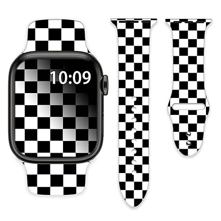 • Black and White Checkered Watch Bands Compatible with Apple Watch 38mm 40mm 41mm for Women Men Silicone Wristbands Strap Replacement for IWatch Series SE 8 7 6 5 4 3 2 1