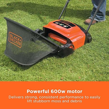 Thông tin sản phẩm BLACK+DECKER Lawn Raker, 600W, Adjustable Height Scarifier with Large Capacity Front Loading Grass Box, GD300-GB