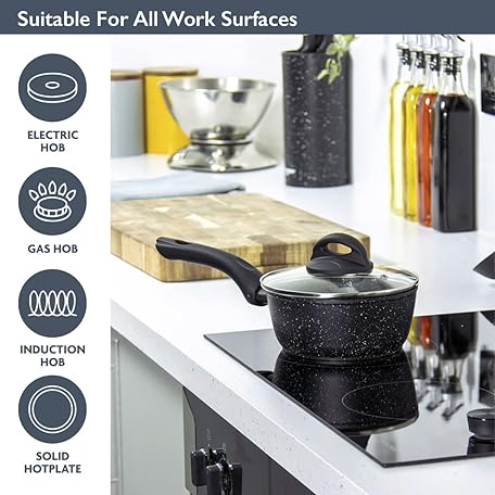 Sản phẩm Blackmoor 65740 Classic 18cm Saucepan with Tempered Glass Lid/Non-Stick Coating/Cool Touch Handle/Suitable for Induction, Gas & Electric Hobs/Black Colour đang được bán với giá ưu đãi là $22.1488 tại nước Anh.