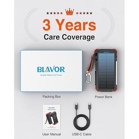 Thương hiệu BLAVOR là cái tên nổi tiếng được rất nhiều khách hàng trên thế giới chọn lựa. Với kiểu dáng đẹp mắt, sang trọng, sản phẩm BLAVOR Solar Power Bank with Built in Cable 20000mAh Fast Charging Portable Charger, 20W USB C Battery Pack for Mobile Phones with Camping Light, Flashlight, Wireless Charging for Apple Watch là sự lựa chọn hoàn hảo nếu bạn đang tìm mua một món cho riêng mình.