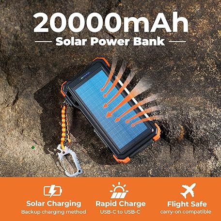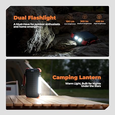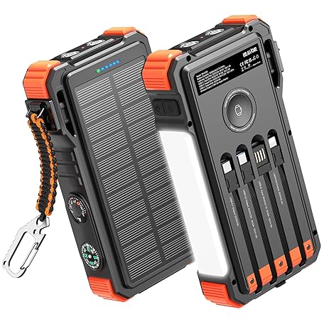 Thông tin sản phẩm BLAVOR Solar Power Bank with Built in Cable 20000mAh Fast Charging Portable Charger, 20W USB C Battery Pack for Mobile Phones with Camping Light, Flashlight, Wireless Charging for Apple Watch