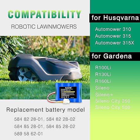 Sản phẩm BLESYS 3500mAh Robotic Lawnmower Battery for Husqvarna Automower 310 315 315X Replacement Battery Model 584 85 28-02 Compatible with Gardena Sileno City 250 500 R100Li R130Li R160Li [18.5V 65Wh] đang được bán với giá ưu đãi là $71.4277 tại nước Anh.