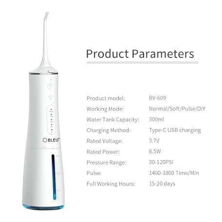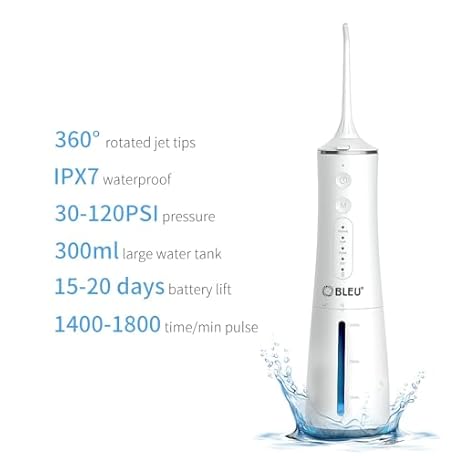 Sản phẩm BLEU Water Flossers for Teeth Cordless Oral Irrigator Dental Water Jet BV-609 Electric Tooth Flosser with 7 Jet Tips 300ML Water Tank USB-C Rechargeable for Tavel and Home Use (White) đang được bán với giá ưu đãi là $42.8479 tại nước Anh.