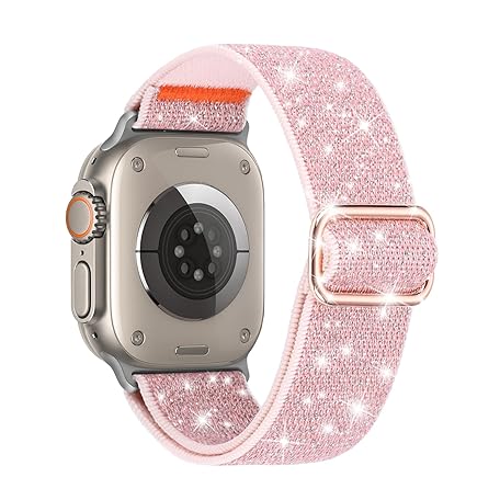 Bling Stretchy Nylon Band Compatible with Apple Watch 49mm Ultra/Ultra 2 Band, 24mm-Wide Sparkly Glitter Solo Loop Strap for iWatch Series 10 9 8 7 6 5 4, Women Shiny Elastic Wristband