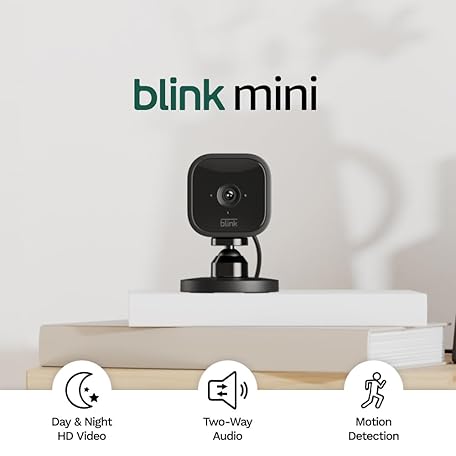 Thông tin sản phẩm Blink Mini | Indoor plug-in pet security camera, 1080p HD day and night video, motion detection, two-way audio, easy setup, Alexa enabled — 1 camera (Black)