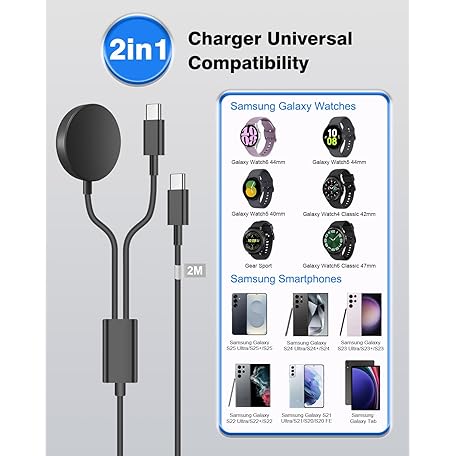 Sản phẩm BLITEZZ Upgraded 2 in 1 Cable for Samsung Charger with Samsung Watch Charger Magnetic/2M USB C Cable Lead Cord Compatible with Sam sung Galaxy Watch 6/6 Classic/ 5/5 Pro/4/3/2/Active/Galaxy S22/S21 đang được bán với giá ưu đãi là $5.9623 tại nước Anh.