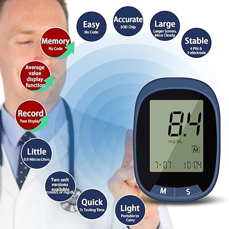 Thông tin sản phẩm Blood Glucose Monitors,Blood Glucose Meter, Blood Sugar Tester With Test Strips x 50 and Lancet x 50 for UK Diabetics -in mmol/L