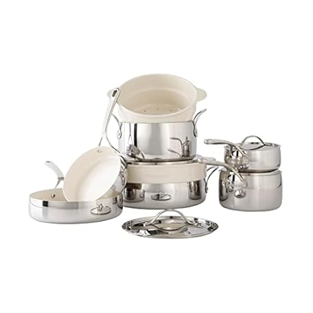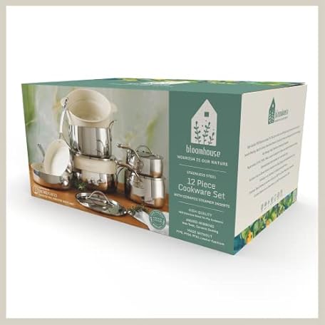 Sản phẩm Bloomhouse - Oprah's Favorite Things - 12 Piece Triply Stainless Steel Pots and Pans Cookware Set w/Non-Stick Non-Toxic Ceramic Interior, Ceramic Steamer Inserts, & 12 Protective Care Bags đang được bán với giá ưu đãi là $217.3569 tại nước Anh.