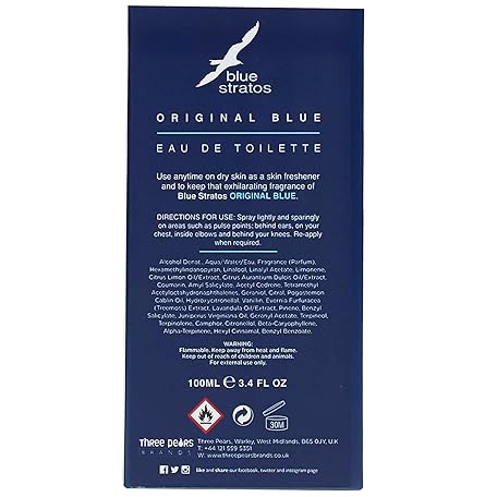 Sản phẩm Blue Stratos Eau De Toilette, Original Blue for Men, Lasting Fragrance, Classic Scent of Cedarwood, Vanilla, and Musk, 100ml đang được bán với giá ưu đãi là $9.6792 tại nước Anh.