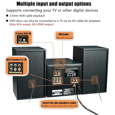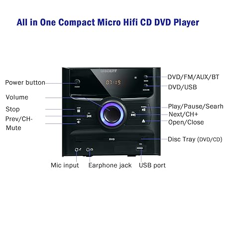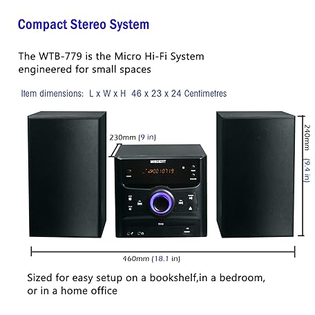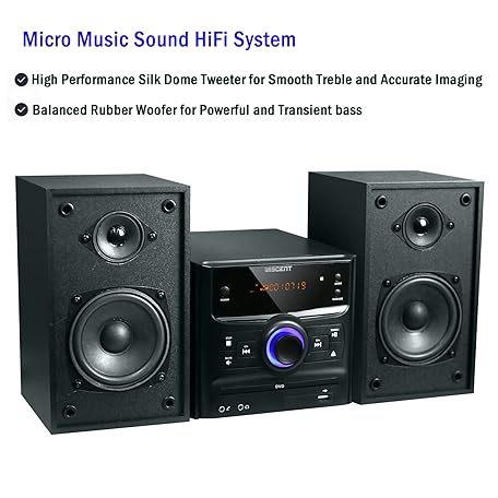 Thông tin sản phẩm Bluetooth Micro Hi-Fi Sound System Stereo CD Player, DVD Player, FM Radio, USB, 30W RMS Powerful Compact Micro Music HiFi Systems