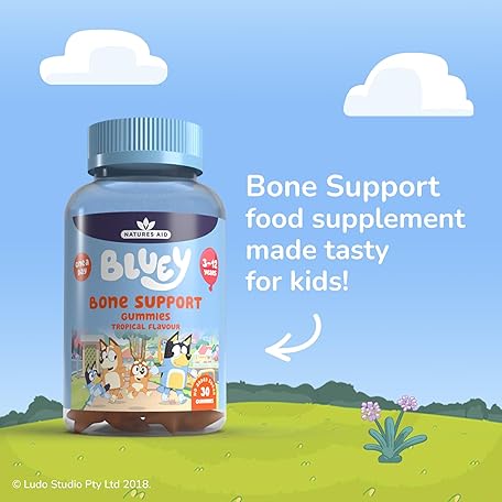 Sản phẩm Bluey Kids Bone Support Gummies - Vitamin D3 & K2 to Support Growing Bodies and Bone Growth - Tropical, No Added Sugar, Vegan, Gluten Free - 30 Gummys for Children Ages 3-12 đang được bán với giá ưu đãi là $13.1672 tại nước Anh.