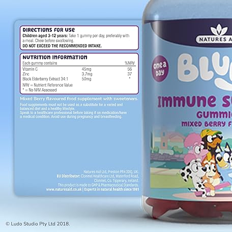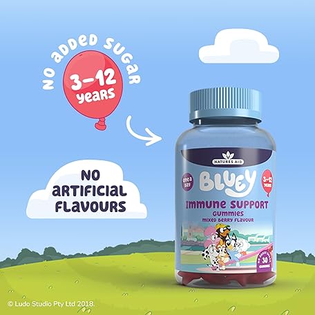 Thương hiệu Natures Aid là cái tên nổi tiếng được rất nhiều khách hàng trên thế giới chọn lựa. Với kiểu dáng đẹp mắt, sang trọng, sản phẩm Bluey Kids Immune Support Gummies - Vitamin C, Zinc & Elderberry to Support Immunity and Immune System - Mixed Berry, No Added Sugar, Vegan, Gluten Free - 30 Gummys for Children Ages 3-12 là sự lựa chọn hoàn hảo nếu bạn đang tìm mua một món cho riêng mình.