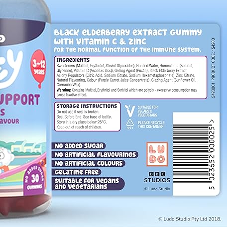 Thông tin sản phẩm Bluey Kids Immune Support Gummies - Vitamin C, Zinc & Elderberry to Support Immunity and Immune System - Mixed Berry, No Added Sugar, Vegan, Gluten Free - 30 Gummys for Children Ages 3-12