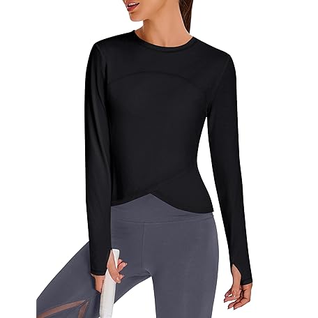 BMJL Womens Workout Tops Black Long Sleeve Shirts Fall Yoga Hiking Tshirts Cute Crop Tops Gym Thumb Hole, Black, L
