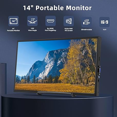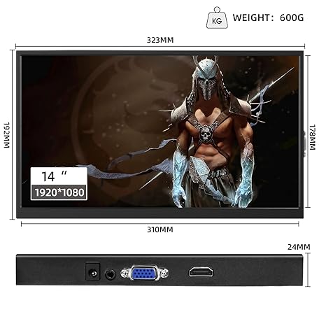 Thông tin sản phẩm Bnztruk 14 Inch Portable Monitor HDMI 1920×1080 Full HD IPS Screen Display with HDMI & VGA for Raspberry Pi, Laptop, PC, MacBook, Xbox, PS3,PS4,60HZ,5ms, PC 16:9 External Display