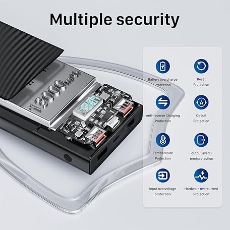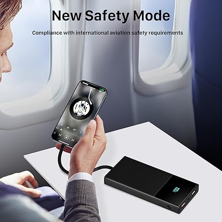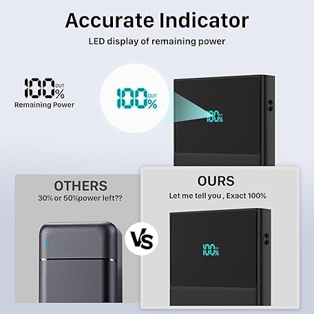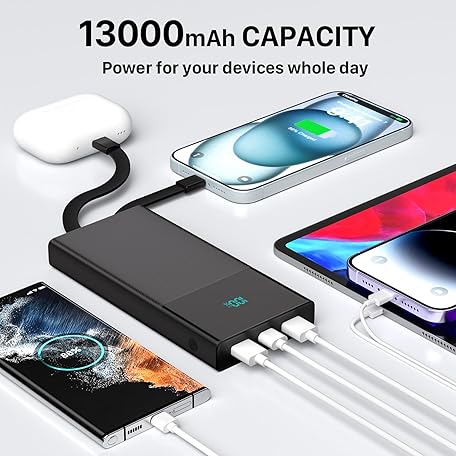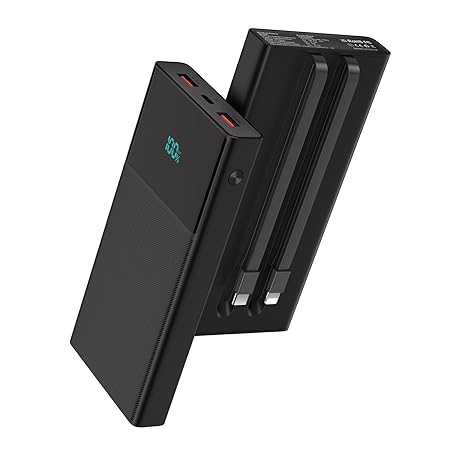 Thông tin sản phẩm BOANV Portable Charger with 2 in 1 Cables(USB-C and iOS), 13000mAh PD Fast Charging Durable Power bank with LED, Battery Backup Charger for iPhone,Android-Black(1 Pack)
