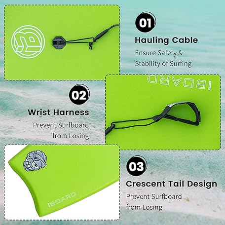 Thông tin sản phẩm Body Board, 33 Inch Lightweight Bodyboard with EPS Cover, Premium Leash and Wrist Strap Surfing
