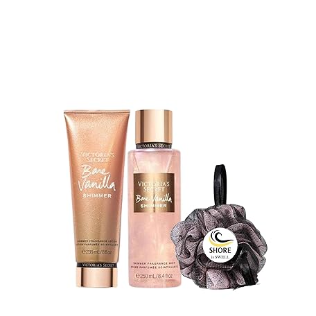 Sản phẩm Body Shimmer set with Shore is Swell Shower Body Puff bundled with Victoria Secret Bare Vanilla Shimmer Fragrance Mist, Shimmer Fragrance Lotion đang được bán với giá ưu đãi là $62.6096 tại nước Anh.