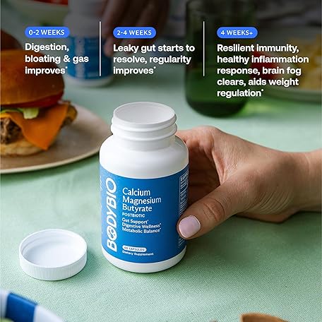 Thông tin sản phẩm BodyBio Butyrate - Postbiotic for Gut Health, Digestive Support, Bloat, Gas & Constipation Relief, Leaky Gut Repair - Calcium, Magnesium + Butyric Acid Supplement for GI Wellness