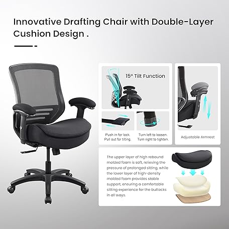 Thông tin sản phẩm BOLISS 400lbs Ergonomic Office Chair, Home Desk Chair,Super Soft Adjustable Arms,Molded Double Seat Cushion Foam Seat and Lumbar Support (Black)