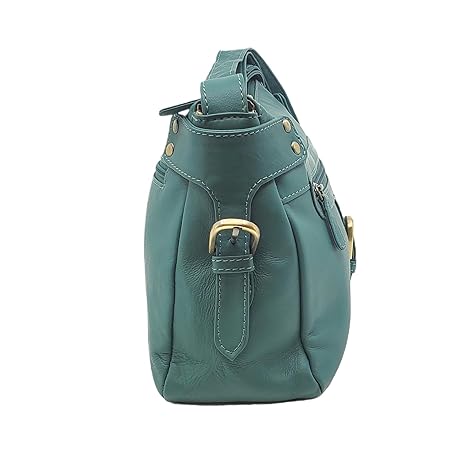 Sản phẩm Bolla Bags Teal Leather Crossbody Bag with Front Zip Pocket, Adjustable Strap đang được bán với giá ưu đãi là $104.204 tại nước Anh.