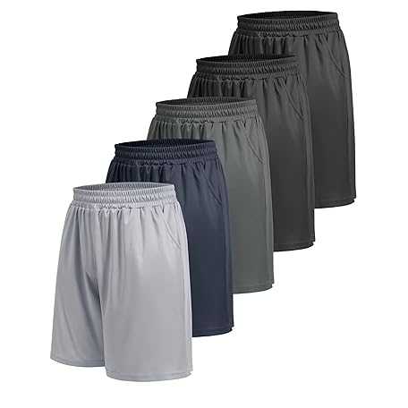 BOOJO 5 Pack Mens Running Gym Sport Shorts with Pockets UK Breathable for Training Size L