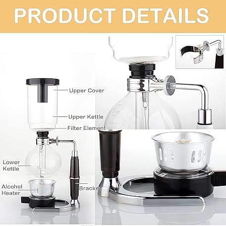 Sản phẩm Borasilicate Glass Syphon Coffee Maker, 5-Cup 600ml(20.3 oz) Vaccum Gravity Clear Coffee Tabletop Siphon Pot with Reusable Cloth Filter Coffee Brewer Hot Tea Maker Machine(Standard Edition) đang được bán với giá ưu đãi là $64.8877 tại nước Anh.